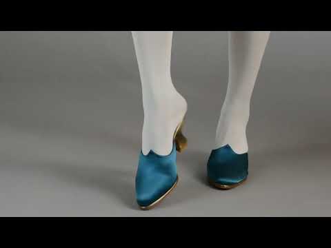 Charlotte 18th century mules blend history and fantasy in an opulent and sophisticated 18th century satin mule. Correct for c. 1700 - 1770s, these elegant backless heeled slippers feature a superbly balanced gold French heel, leather lining for easy walking, and a softly pointed toe. Sumptuous satin uppers in rich colors are gorgeous on their own, or customize them with your preferred ribbons and rosettes. Pair Charlotte with your best Georgian gown, or with your everyday wardrobe to add a touch of luxury!