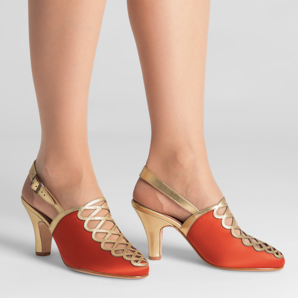 PRE-ORDER Hedy Vintage Slingbacks (Vermilion/Gold)