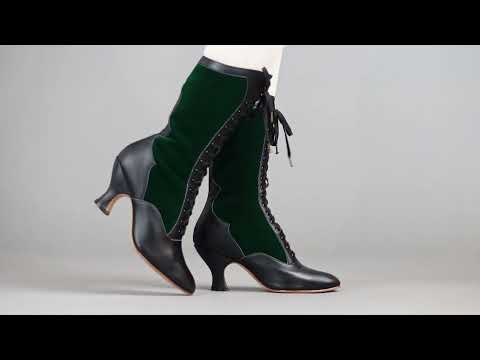 Camille Edwardian Boots (Black/Green)