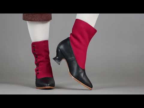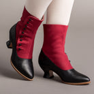 Manhattan Victorian Cloth-Top Button Boots (Burgundy/Black)