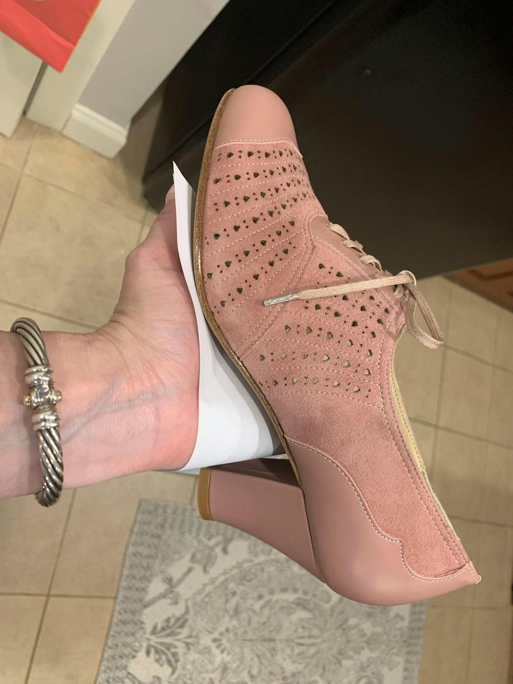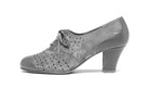 Meet Rita, a sumptuous and lush 1930s oxford. Rita's suede uppers in evocative colors are pierced with an artistic perforated motif. Color coordinated leather toe and heel foxing completes this exceptional shoe. Rita is built on a custom, round-toed 1930s last, with a perfectly balanced 2.5"/6.35 cm Cuban heel. Rita is available in both B and D width.